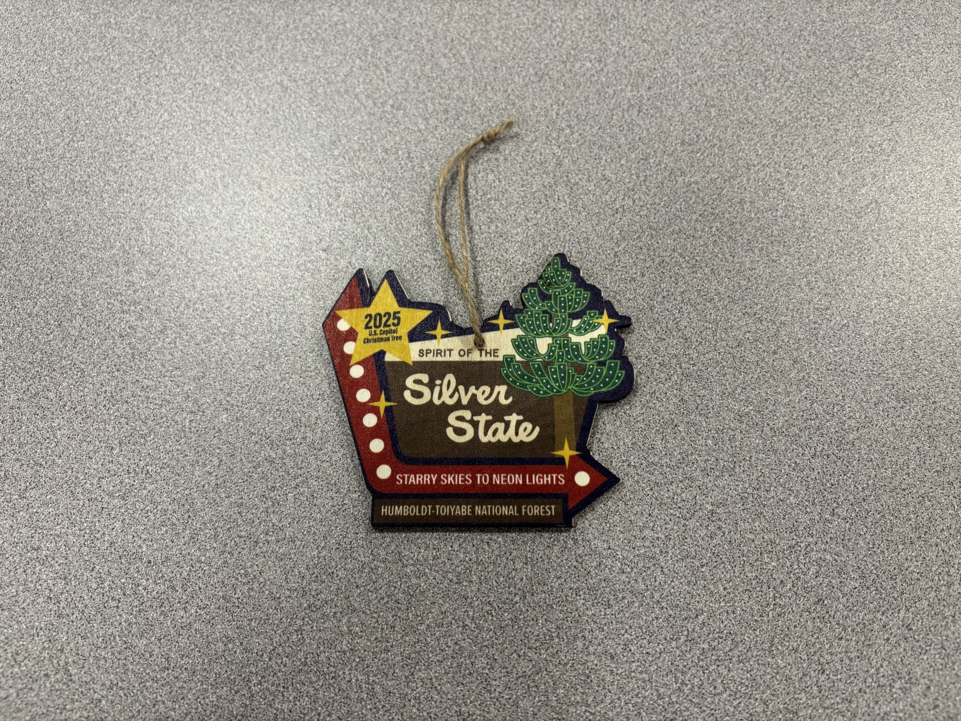 2025 Capitol Christmas Ornament, Spirit of the Silver State. Humboldt-Toiyabe National Forest in Nevada. Wooden ornament with twine hangar.